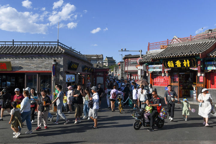 人們在北京什剎海一帶游覽參觀(2023年6月9日攝)。