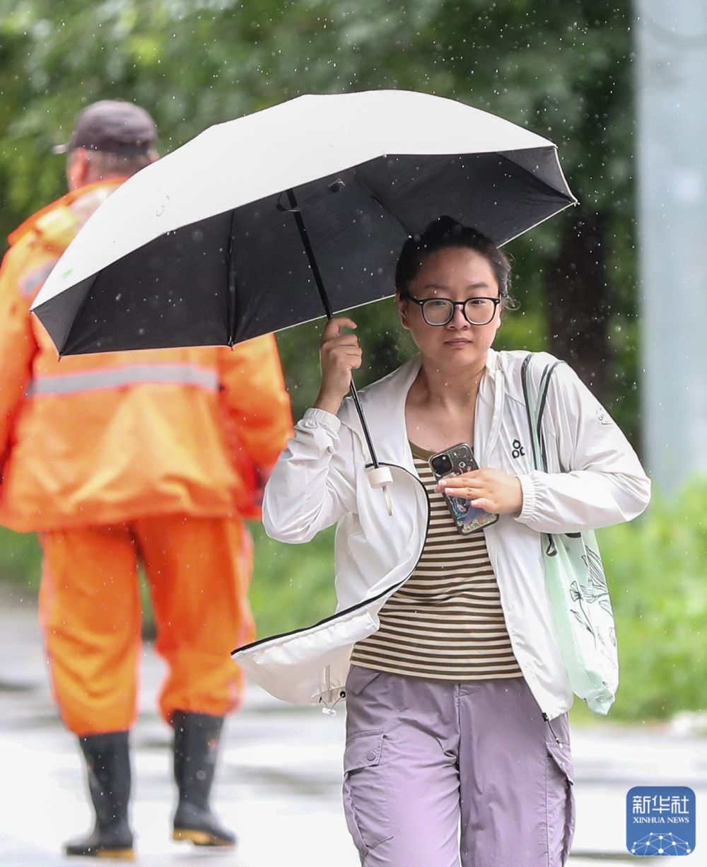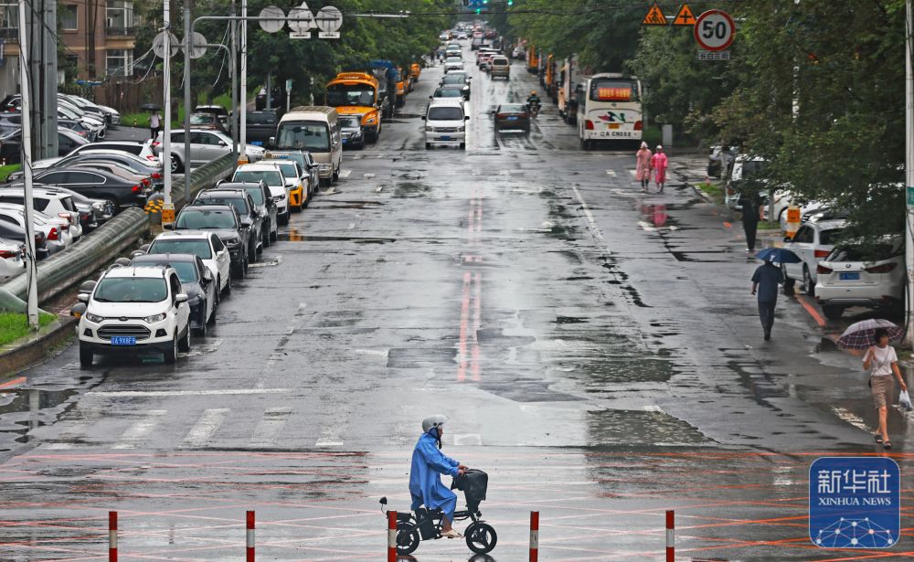 7月28日,在遼寧省沈陽市和平區(qū),市民在雨中出行?! ⌒氯A社記者 楊青 攝
