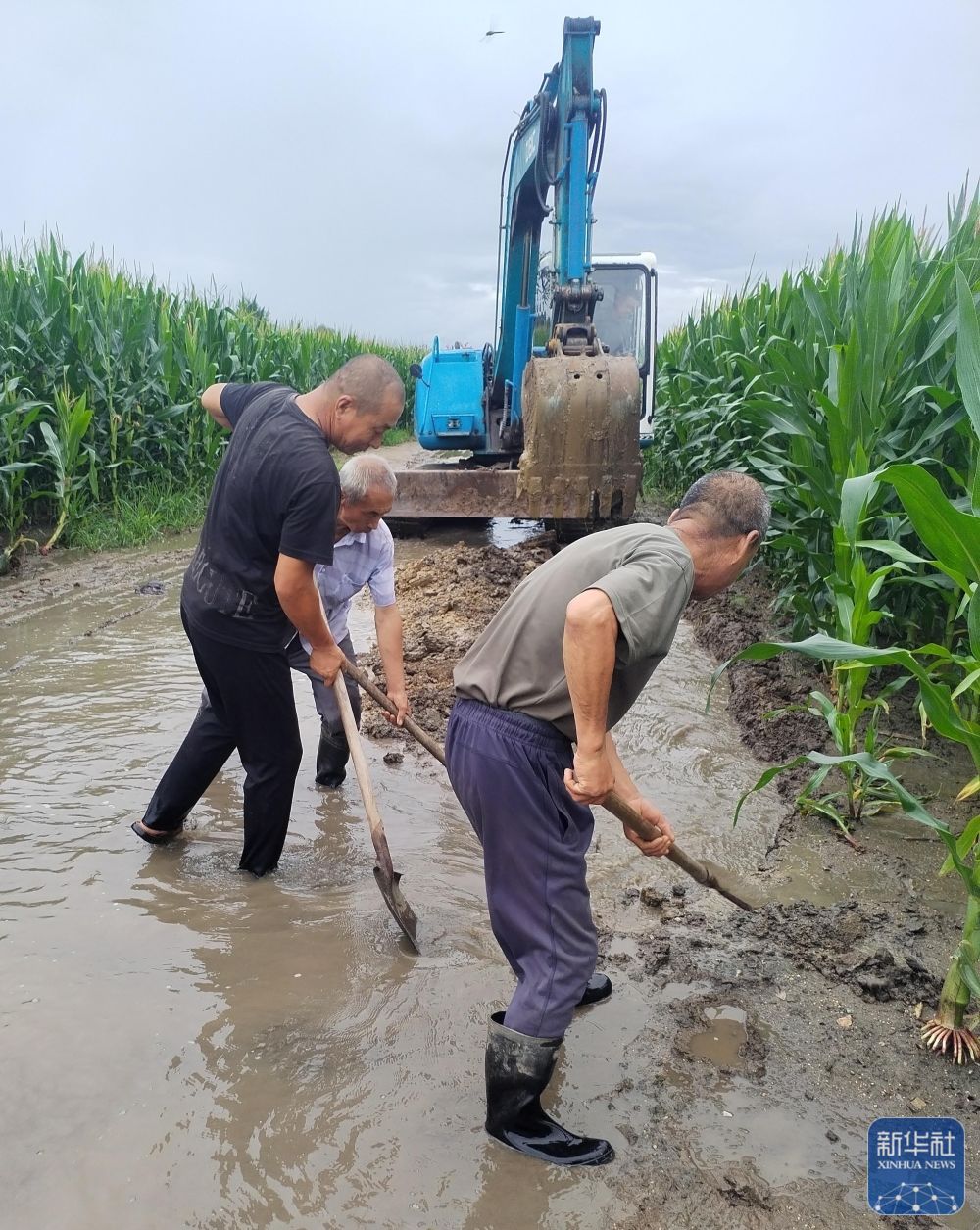 7月28日,鐵嶺市昌圖縣昌圖鎮(zhèn)八家子村組織黨員干部來到低洼耕地進(jìn)行排水,減少農(nóng)田內(nèi)澇。 新華社發(fā)