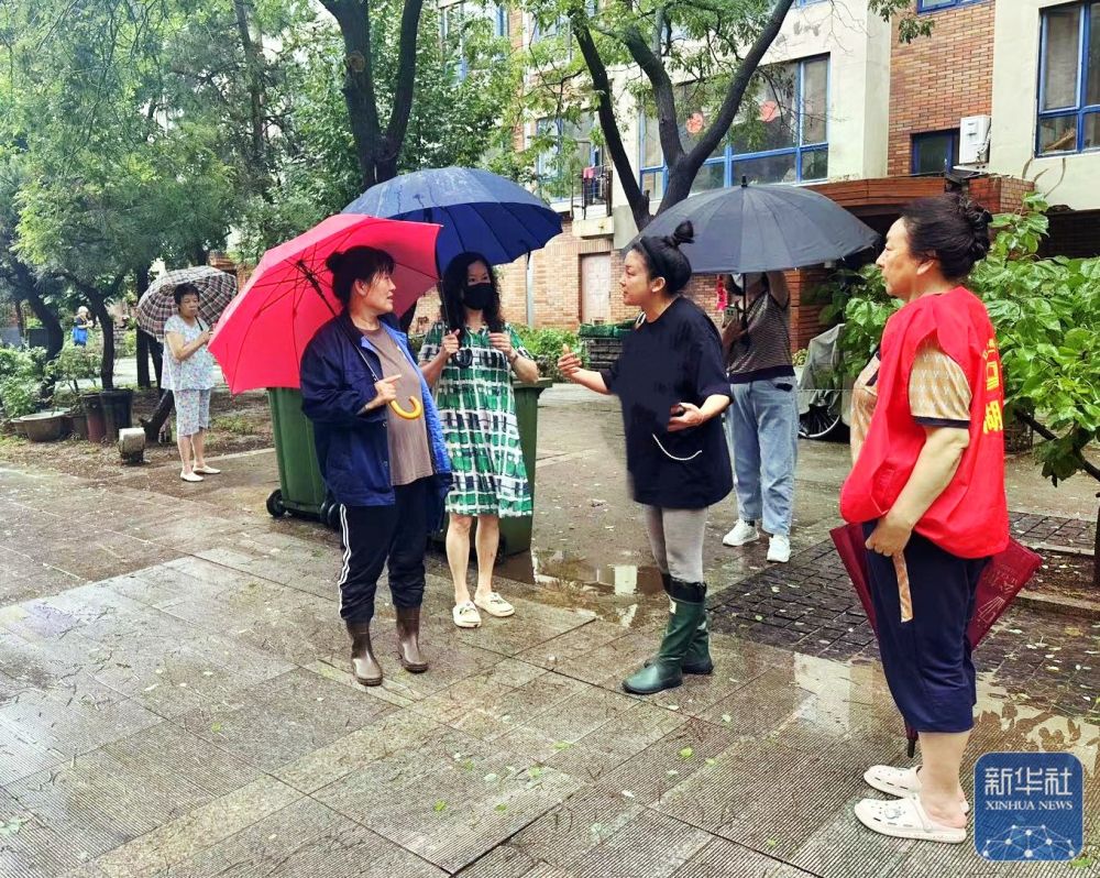 7月27日,營口市站前區(qū)建豐街道工作人員叮囑居民注意安全。 新華社發(fā)