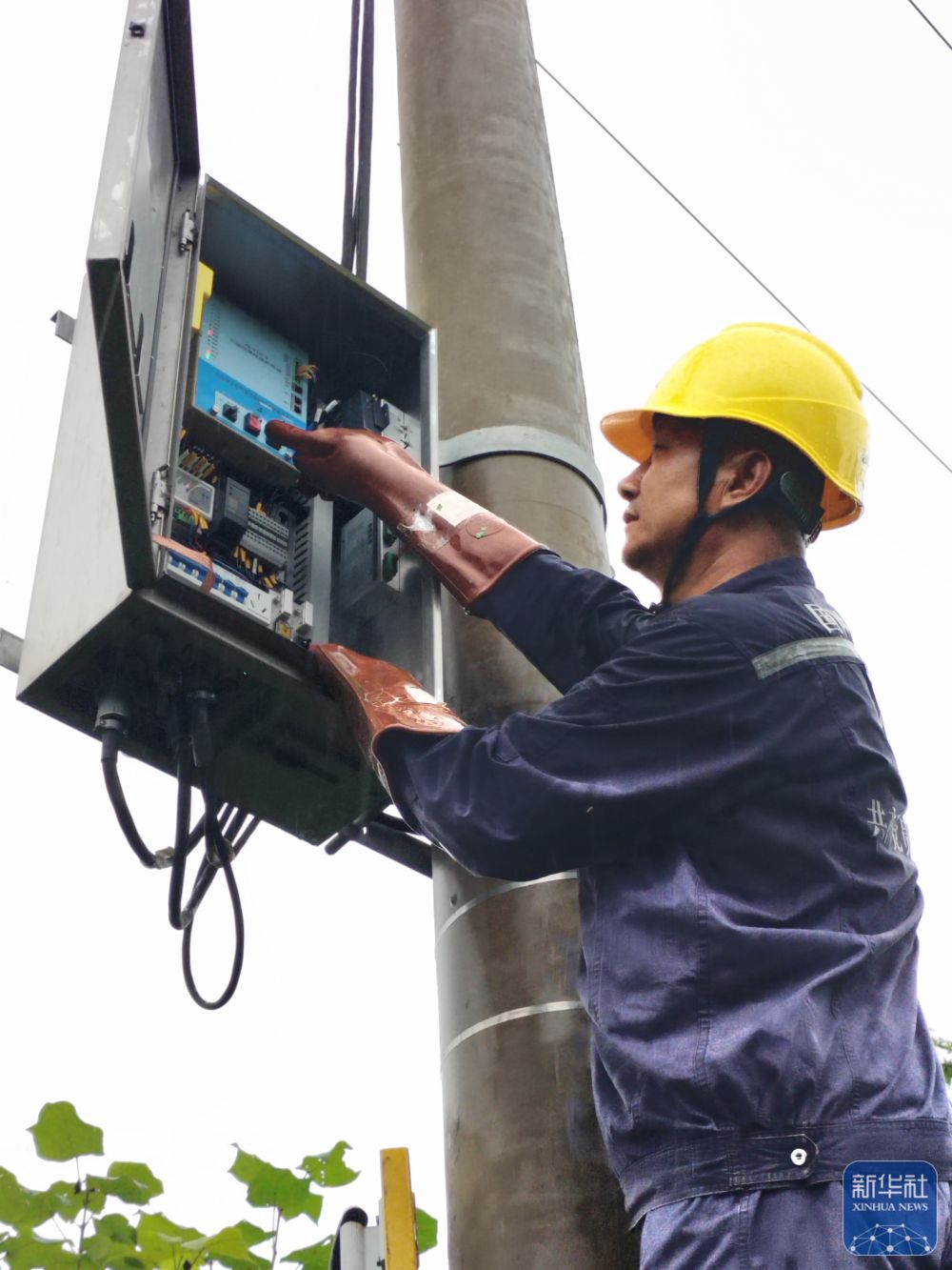 7月27日,在遼寧省丹東市,國家電網(wǎng)丹東供電公司員工對10千伏堡鎮(zhèn)線進(jìn)行檢查。 新華社發(fā)