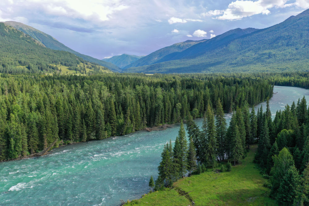 7月22日拍攝的新疆阿勒泰地區(qū)喀納斯景區(qū)(無人機(jī)照片)。