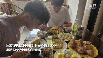 今年暑假剛開始,迪米特里就迫不及待地隨團(tuán)來(lái)到中國(guó),住在潘韜宇家中,沉浸式感受中國(guó)家庭的日常。從品嘗特色小吃、共同學(xué)做中國(guó)菜,到一起打籃球、打游戲,線下的深入接觸讓兩人的友誼進(jìn)一步升溫。