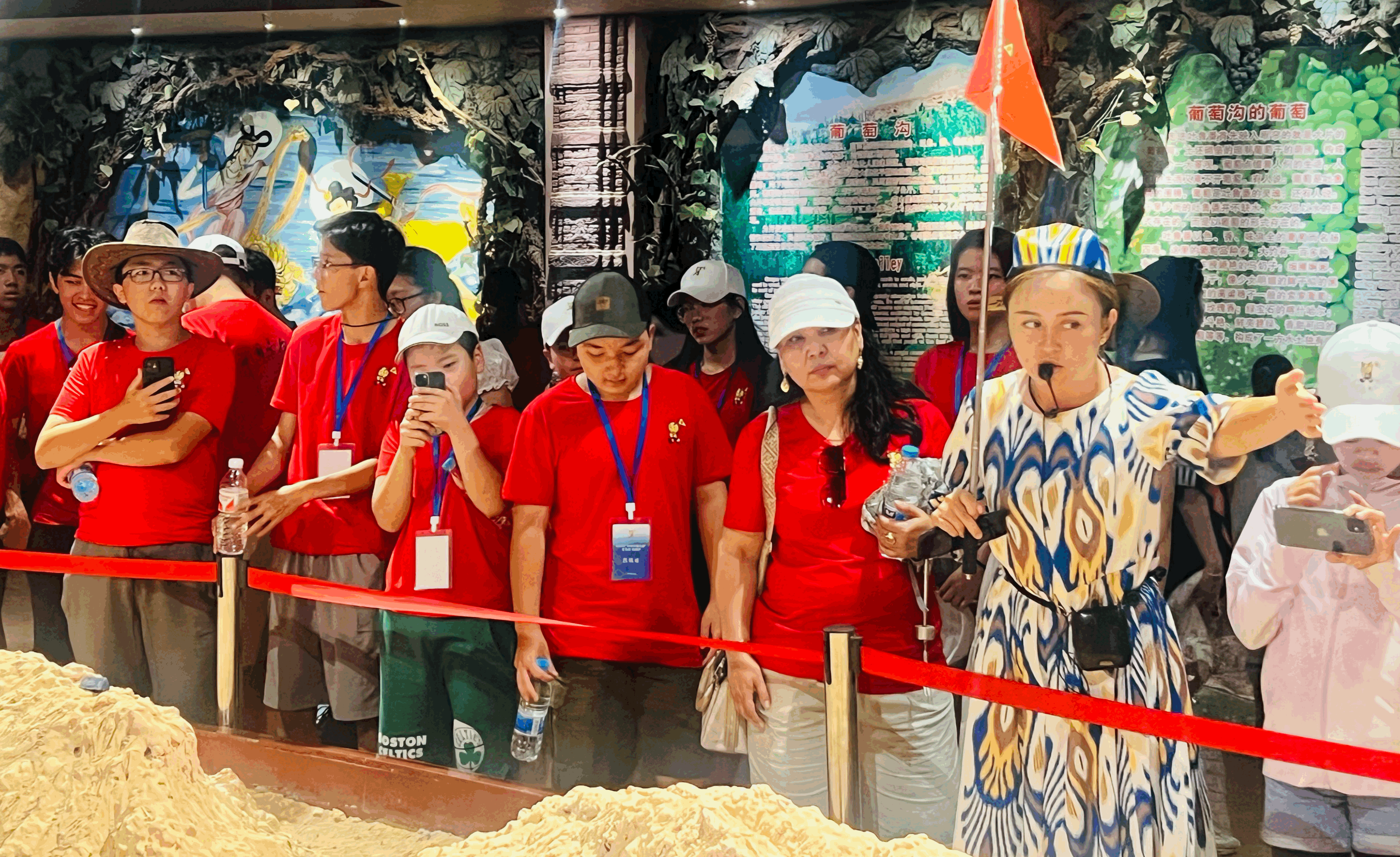 7月23日,在吐魯番市高昌區(qū)火焰山景區(qū),營(yíng)員們跟隨解說(shuō)員了解火焰山的地形地貌。天山網(wǎng)-新疆日?qǐng)?bào)記者 司路路攝