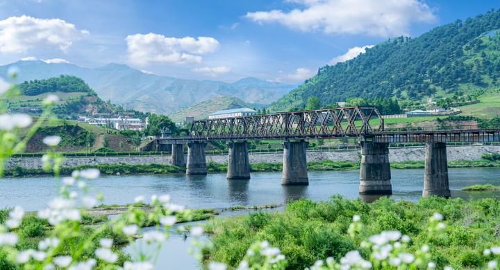 這是地處中朝邊境、位于吉林省集安市的鴨綠江國(guó)境鐵路大橋(2023年6月17日攝,無(wú)人機(jī)照片)。新華社記者 周萬(wàn)鵬 攝