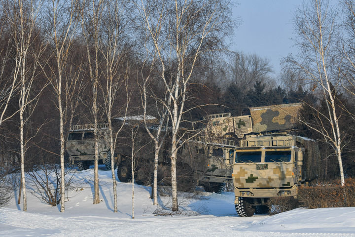 聯(lián)勤保障部隊(duì)某汽車運(yùn)輸旅運(yùn)輸分隊(duì)開(kāi)展戰(zhàn)地駕駛課目訓(xùn)練(2024年1月2日攝)。新華社發(fā)(趙佳慶 攝)