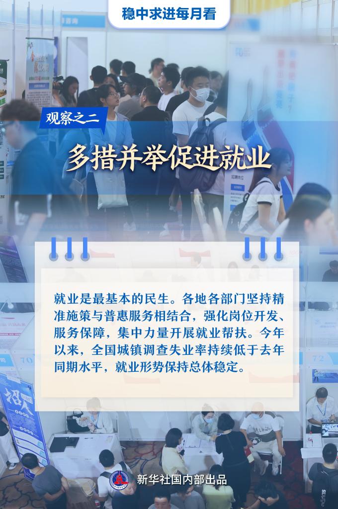 【記者觀察】就業(yè)是最基本的民生。各地各部門堅持精準施策與普惠服務(wù)相結(jié)合,強化崗位開發(fā)、服務(wù)保障,集中力量開展就業(yè)幫扶。今年以來,全國城鎮(zhèn)調(diào)查失業(yè)率持續(xù)低于去年同期水平,就業(yè)形勢保持總體穩(wěn)定。