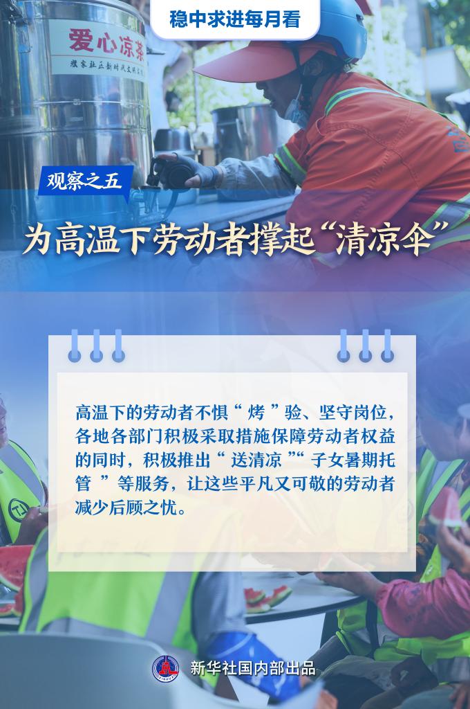 【記者觀察】高溫下的勞動者不懼“烤”驗、堅守崗位,各地各部門積極采取措施保障勞動者權(quán)益的同時,積極推出“送清涼”“子女暑期托管”等服務(wù),讓這些平凡又可敬的勞動者減少后顧之憂。