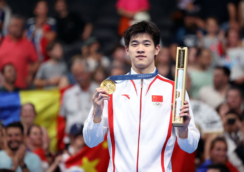 ↑中國選手潘展樂在頒獎儀式上。新華社記者 杜宇 攝