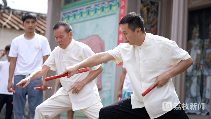 和村里許多家庭一樣,對英歌的喜愛在陳揚波家里代代相傳,他的爺爺陳才斗曾跟隨廣東省歌舞團,參加了1953年在北京的演出。“別人追星,我就追英歌?!标悡P波從小便癡迷于英歌激昂的節(jié)奏和矯健的身姿,夢想著有一天能成為英歌隊的一員。他迄今記得,兒時的大年初一,每當英歌鼓點響起,自己便會滿心歡喜地一路追隨在隊伍之后,縱情吶喊。到了寒暑假,他則會約上小伙伴,一起反復播放著VCD中的動作,時而慢放,時而暫停,接著把掃帚折成兩段,以柄為槌,歡然起舞。
