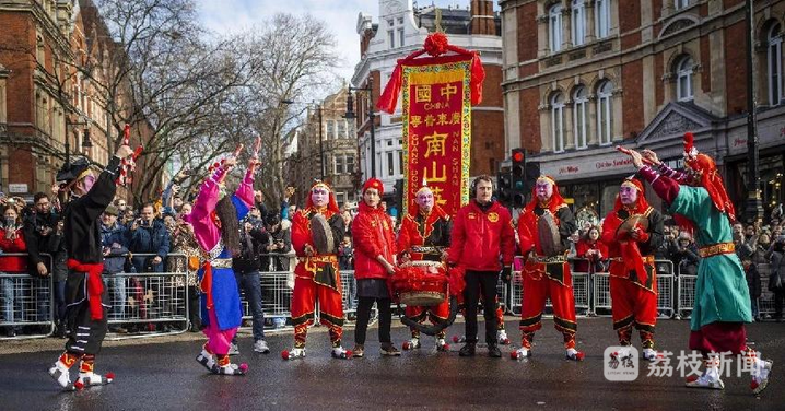 當地時間 2024 年 2 月 11 日,陳來發(fā)教練率領廣東普寧南山英歌隊的近 20 名舞者現身英國倫敦,揭開了當地新春慶典的帷幕,這也是普寧英歌首次出海。與此同時,千里之外的普寧市內另有一支南山英歌隊伍正穿梭于街巷,為市民驅邪扶正,帶隊者之一正是陳揚波。
