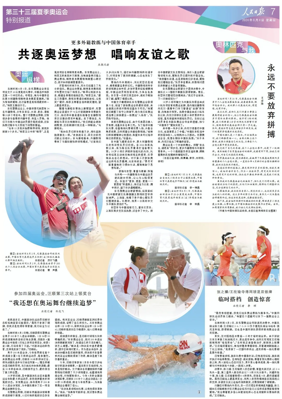 鼓勵(lì)與安慰、尊重與理解、祝福與共鳴……外籍教練與中國運(yùn)動(dòng)員彼此敞開懷抱,讓心與心貼得更近。在追求“更快、更高、更強(qiáng)——更團(tuán)結(jié)”的道路上,他們?nèi)σ愿?、攜手同行,留下許多溫暖瞬間。