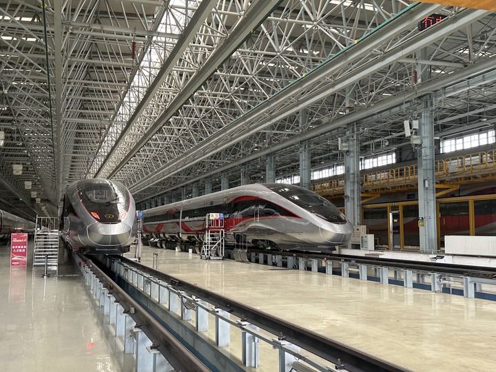 在中車長客國鐵事業(yè)部制造中心拍攝的復(fù)興號智能動(dòng)車組(2024年7月17日攝)。