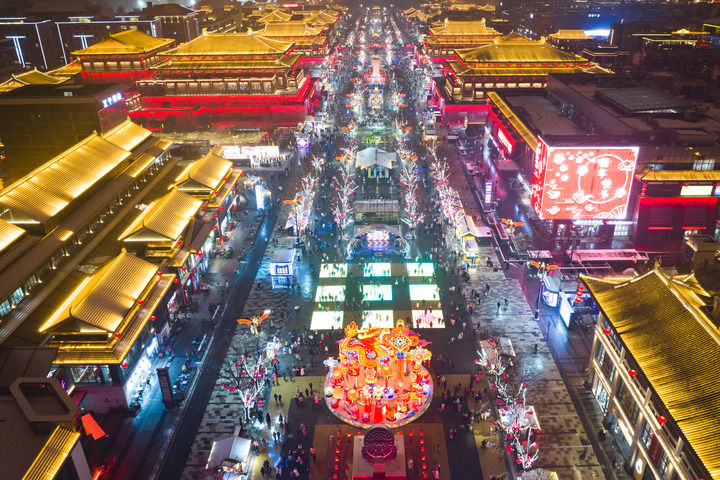 西安大唐不夜城景區(qū)景色(2024年2月2日攝,無人機照片)。新華社記者 邵瑞 攝