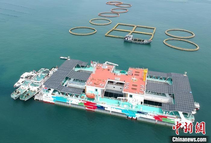 圖為航拍“閩投1號”深海智慧漁旅平臺。(無人機(jī)照片)中新社記者 呂明 攝