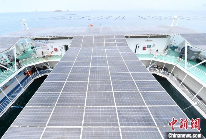 登上平臺頂層的露天平臺,由上而下鋪陳開來的巨大光伏電板引人注目。福建投資開發(fā)集團(tuán)有限公司戰(zhàn)略發(fā)展部總經(jīng)理黃慧湄介紹,“閩投1號”平臺由海洋可再生能源提供電力,搭載的光伏發(fā)電和儲能電池實現(xiàn)多能互補(bǔ)的綠色能源供電系統(tǒng),可長期穩(wěn)定地為平臺生產(chǎn)生活、休閑旅游提供能源支撐,并實現(xiàn)零碳或低碳排放。