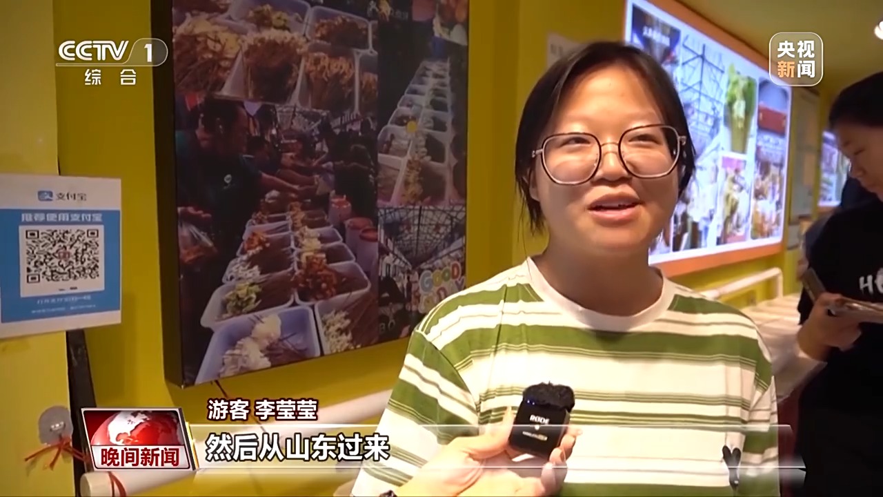 游客 李瑩瑩:之前在網(wǎng)上刷到過,從山東過來,也嘗嘗當?shù)氐囊恍┨厣覀兡沁呥€是有文化的差異,一個很新奇的體驗。