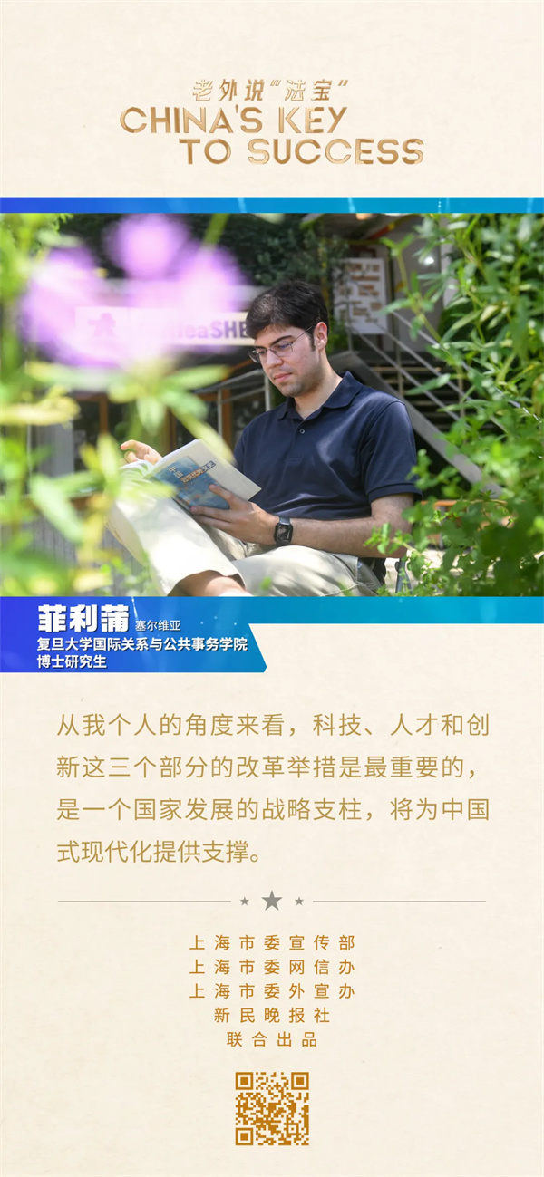 塞爾維亞帥小伙菲利蒲是復旦大學國際關(guān)系與公共事務(wù)學院博士研究生。很小的時候,他就跟隨來華從事歷史研究工作的父母來到上海,小學二年級就當上了留學生。用他的話來說,就是“接受了九年制義務(wù)教育”。
