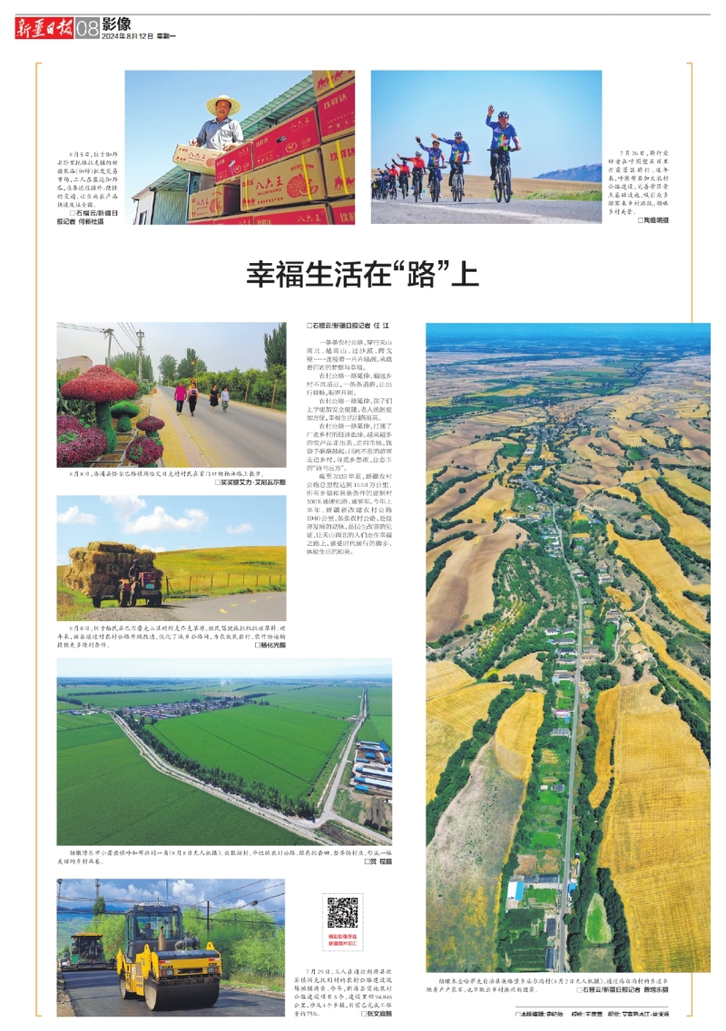 截至2023年底,新疆農(nóng)村公路總里程達(dá)到15.58萬公里,所有鄉(xiāng)鎮(zhèn)和具備條件的建制村100%通硬化路、通客車。今年上半年,新疆新改建農(nóng)村公路1940公里。條條農(nóng)村公路,是經(jīng)濟(jì)發(fā)展的動(dòng)脈,是民生改善的見證,讓天山南北的人們走在幸福之路上,感受時(shí)代前行的腳步,體驗(yàn)生活的和美。