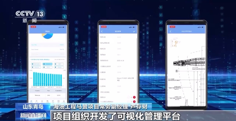 海油工程馬贊項(xiàng)目常務(wù)副經(jīng)理 蘆存財(cái):對一個(gè)總重近2萬噸的超級組塊,平臺材料、設(shè)備成千上萬,項(xiàng)目組織開發(fā)了可視化管理平臺,通過數(shù)字模擬、建造孿生技術(shù)實(shí)現(xiàn)建造全流程的數(shù)字化管控。