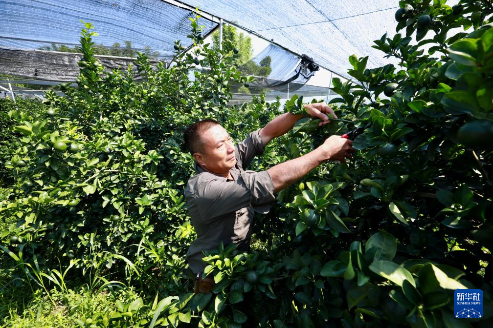 8月12日,福建南平市延平區(qū)爐下鎮(zhèn)斜溪村村民王崇年在護(hù)理果園。 新華社記者 姜克紅 攝