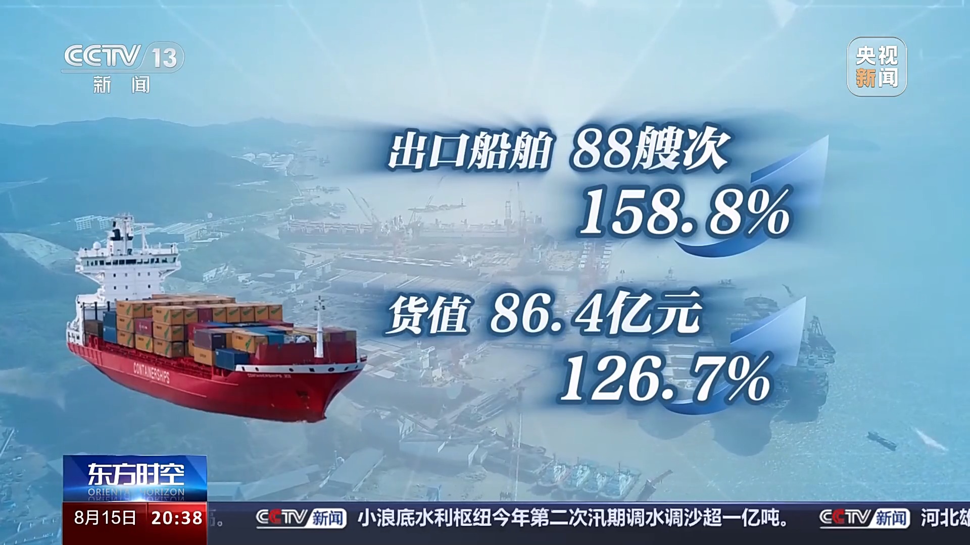 今年上半年,浙江全省進(jìn)出口總值2.56萬(wàn)億元,比2023年同期增長(zhǎng)7.8%,其中,出口總值1.90萬(wàn)億元,增長(zhǎng)8.6%,進(jìn)口總值6625.9億元,增長(zhǎng)5.5%。外貿(mào)進(jìn)出口規(guī)模均創(chuàng)歷史同期新高,其中,船舶出口勢(shì)頭強(qiáng)勁。
