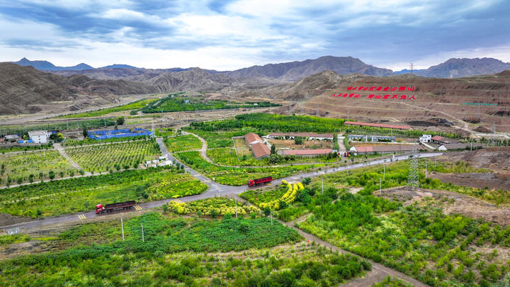 寧夏石嘴山市石炭井大磴溝生態(tài)修復(fù)示范區(qū)(2024年8月6日攝,無人機照片)。