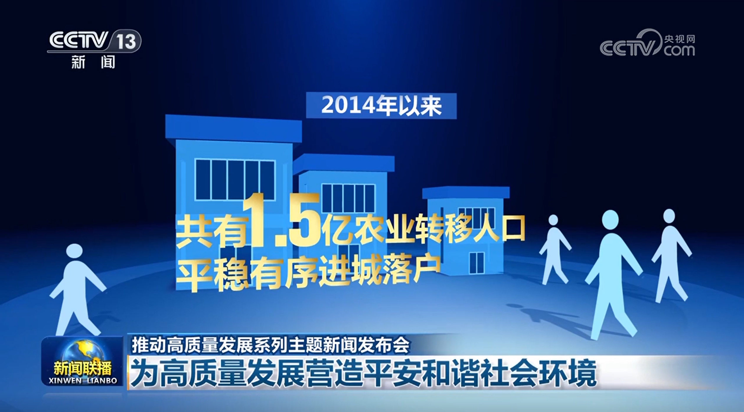 近年來,公安機(jī)關(guān)有序推進(jìn)農(nóng)業(yè)轉(zhuǎn)移人口市民化。2014年以來,共有1.5億農(nóng)業(yè)轉(zhuǎn)移人口平穩(wěn)有序進(jìn)城落戶,全國戶籍人口城鎮(zhèn)化率由2014年的35.9%提高到2023年的48.3%。