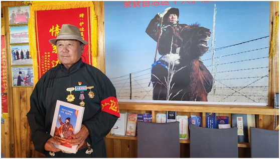 從石頭路走到柏油路,從騎駱駝、馬兒巡邊,到騎摩托車巡邊……圖門的護(hù)邊之路走了許多年,他把父輩們守邊護(hù)邊的精神一直傳承下去,他說:“作為一名共產(chǎn)黨員,作為一個黨組織信任的‘紅色堡壘戶’,我會守好邊疆安寧,守護(hù)好這片綠水青山,服務(wù)好家鄉(xiāng)廣大牧民群眾,帶領(lǐng)大家過上幸福生活!”