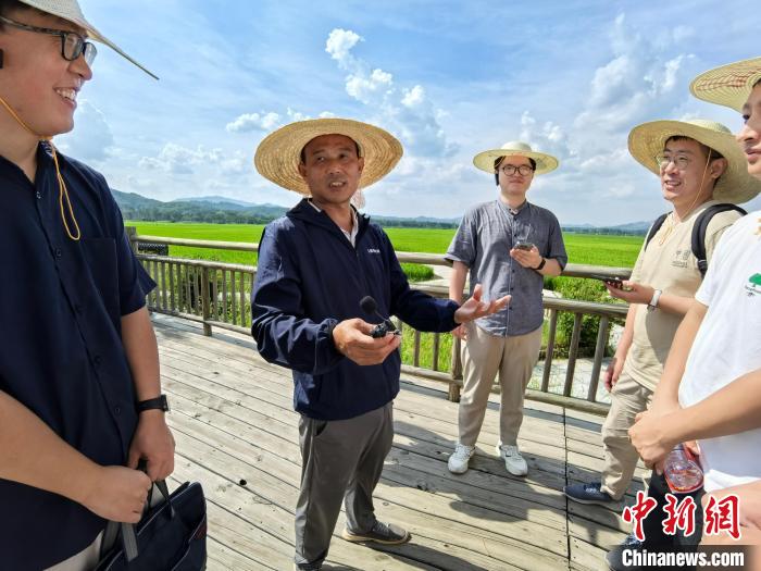 “而今邁步從頭越——長征路上學黨史”網上主題宣傳福建線活動采訪團成員走進汀江國家濕地公園,感受長汀生態(tài)治理成果。中新網記者 張金川 攝
