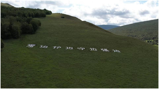 1984年7月,王玉發(fā)在阿爾山林業(yè)局林場工作期間,光榮地加入了中國共產(chǎn)黨。今年,王玉發(fā)迎來了加入中國共產(chǎn)黨的第40個年頭。為了慶祝這一特殊時(shí)刻,王玉發(fā)用1000余塊石磚堆砌出“愛民 護(hù)邊守邊 強(qiáng)邊”八個大字,成為山坡上一道壯觀的風(fēng)景線。