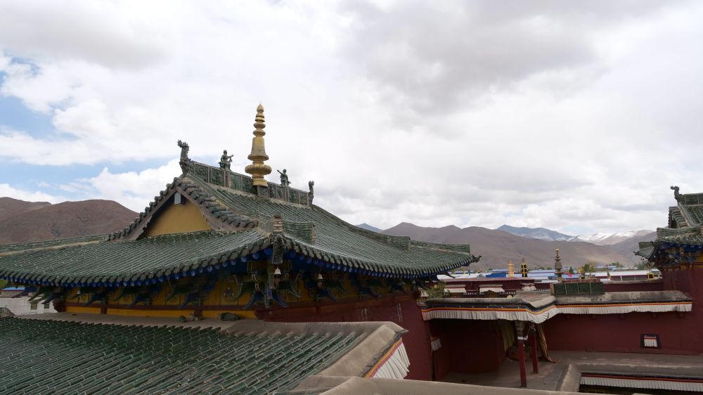 這是夏魯寺重檐歇山式屋頂,呈現(xiàn)典型的漢藏融合風(fēng)格(2024年5月8日攝)。新華社記者 邱星翔 攝