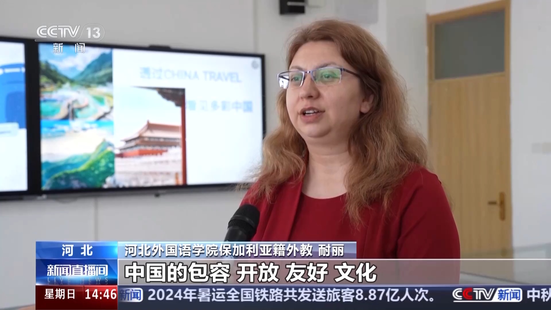 河北外國語學(xué)院保加利亞籍外教 耐麗:我是9年之前來到中國的,中國的包容、開放、友好、文化讓我非常喜歡在這里,我在這里也一直看著中國的變化和發(fā)展,我希望跟更多人分享我在這里感受到的多彩的中國。