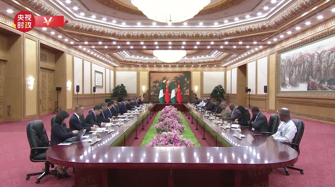 習(xí)近平指出,很高興結(jié)識(shí)總統(tǒng)先生,歡迎你來(lái)華出席中非合作論壇峰會(huì)并對(duì)中國(guó)進(jìn)行國(guó)事訪問(wèn)。尼日利亞是具有重要影響的非洲大國(guó),擁有巨大人口規(guī)模和發(fā)展?jié)摿ΑO嘈旁谀愕念I(lǐng)導(dǎo)下,尼日利亞國(guó)家發(fā)展改革事業(yè)將取得更大成就。