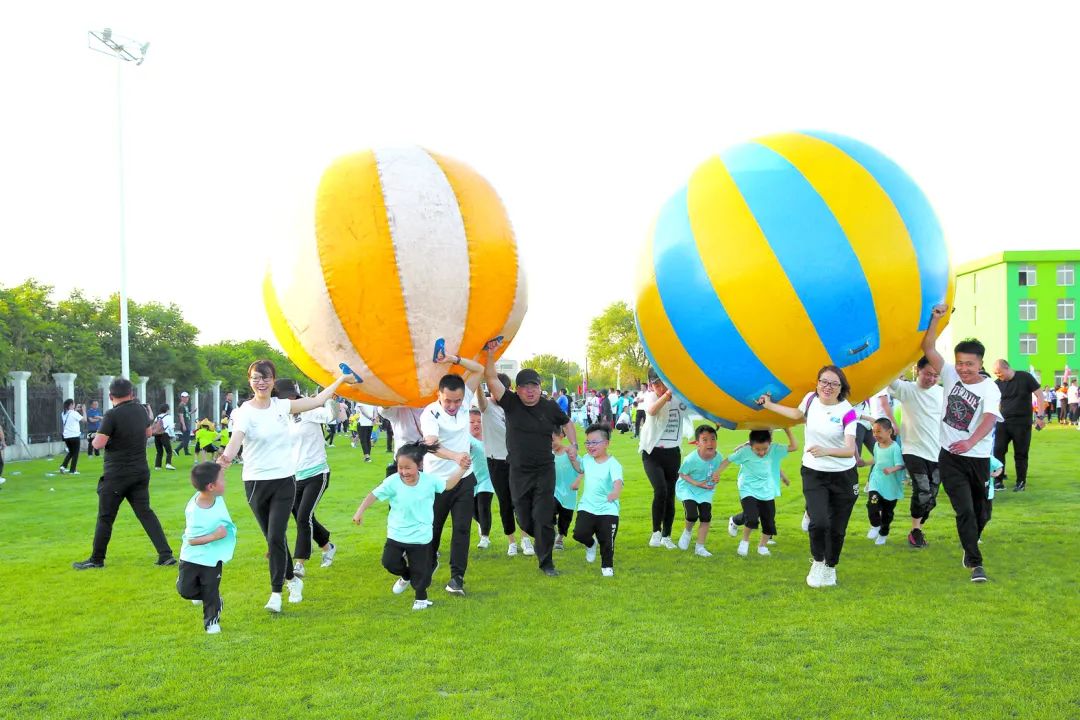 遼寧省鞍山市幼兒園組織幼兒和家長(zhǎng)一起快樂(lè)做游戲。