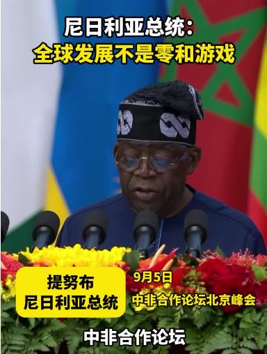 尼日利亞總統(tǒng)提努布5日在中非合作論壇北京峰會(huì)開幕式上說(shuō),中非合作論壇以及更廣泛的中非伙伴關(guān)系所取得的成功,表明一個(gè)重要真理:全球發(fā)展不是零和游戲。