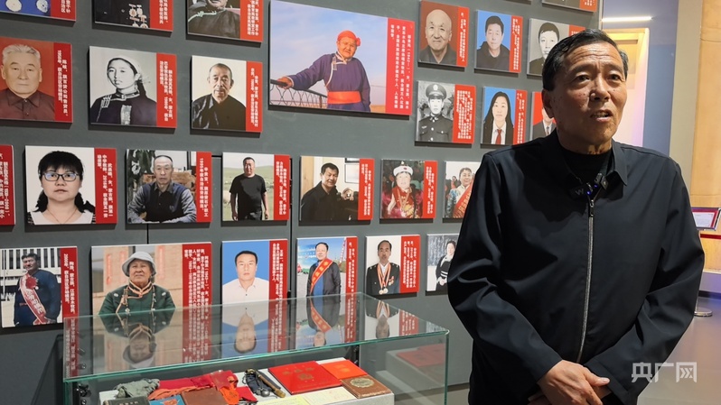 9月4日,淅淅瀝瀝的雨下個不停。下午三時許,孫保衛(wèi)來到四子王旗博物館展廳,在“人民楷?!倍假F瑪展區(qū)駐足良久。他是都貴瑪額吉養(yǎng)育的28個“國家的孩子”中年齡最小的一個。