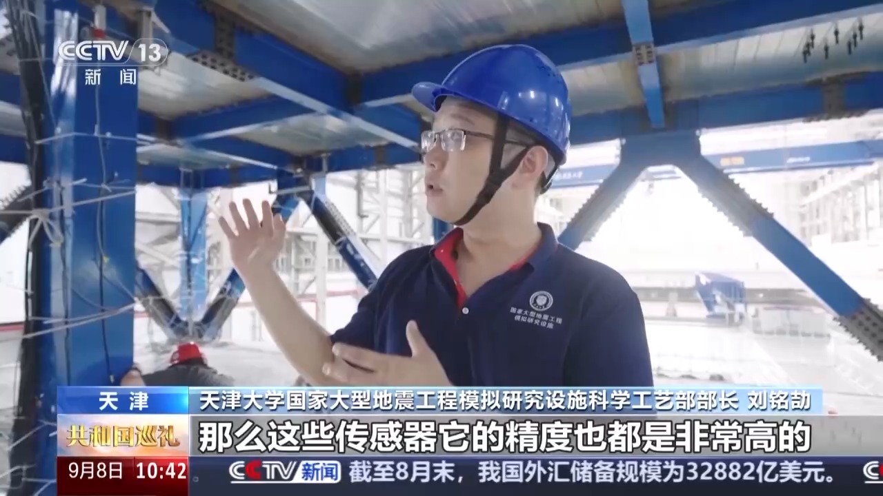 天津大學國家大型地震工程模擬研究設施科學工藝部部長 劉銘劼:我們安裝的傳感器加在一起有500多個,那么這些傳感器它的精度也都是非常高的,比方說我們測量結構變形的傳感器,它的最小測量的值是0.1個毫米,比我們頭發(fā)絲直徑還要再小。