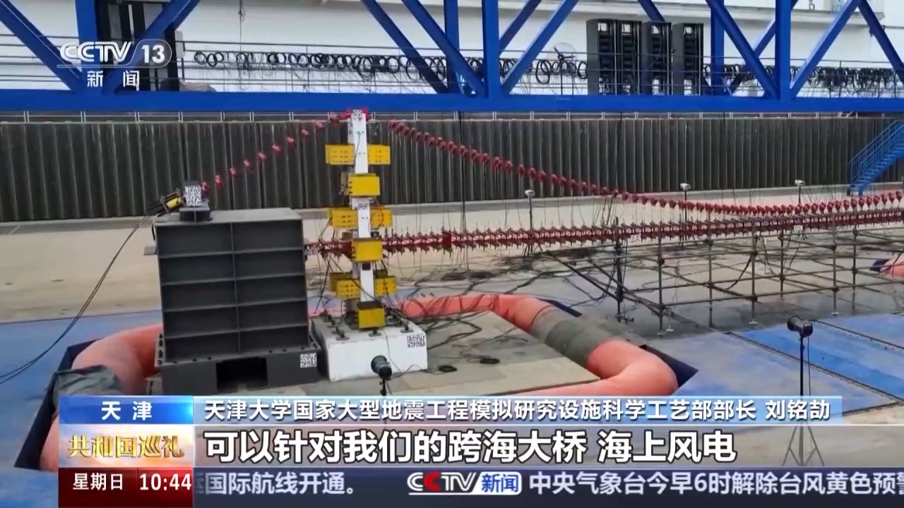 天津大學國家大型地震工程模擬研究設施科學工藝部部長 劉銘劼:我們這里面是世界上唯一的一套,可以實現(xiàn)水下雙臺地震、波浪、水流聯(lián)合模擬的一個試驗裝置,可以在3米水深下工作,可以針對我們的跨海大橋、海上風電這些海上“超級工程”進行更加真實的地震模擬研究。