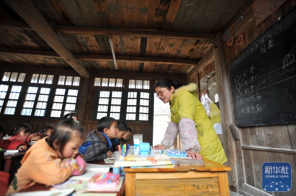 在廣西靈川縣蘭田瑤族鄉(xiāng)東良教學(xué)點(diǎn),“85后”老師石夏月給學(xué)生上課(2022年2月24日攝)。