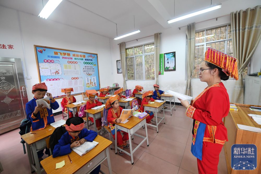 在廣西金秀瑤族自治縣忠良鄉(xiāng)更范教學(xué)點(diǎn),“85后”老師盧秀芬在給學(xué)生上課(2019年6月5日攝)。