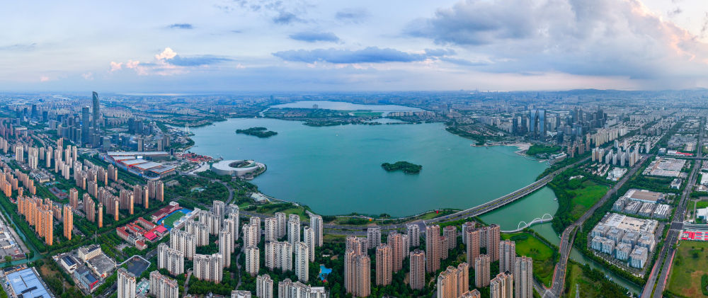 這是8月29日拍攝的蘇州金雞湖(無人機照片)。