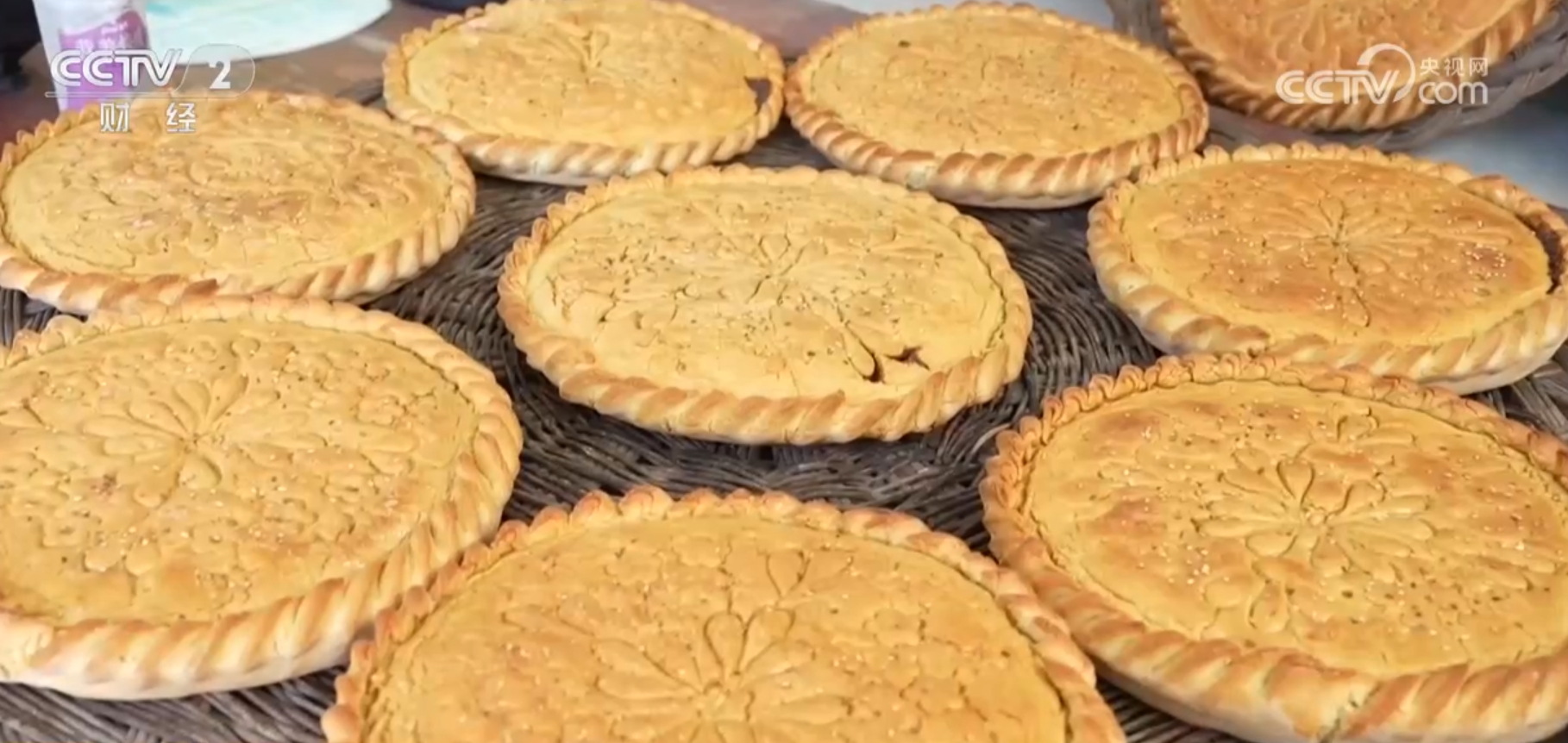 在甘肅蘭州,有一種名叫“糖油鍋盔”的土月餅也迎來銷售旺季,每天早晨,當?shù)乩献痔栭T前都會排起長隊。