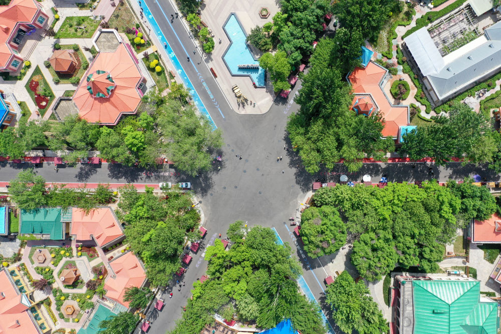從空中俯瞰六星街,映入眼簾的是一片綠樹成蔭、紅瓦藍(lán)墻的正六邊形街巷。六星街始建于20世紀(jì)30年代,街巷內(nèi)居住著漢族、維吾爾族、哈薩克族等13個(gè)民族的群眾,是新疆多民族和諧共處、多元文化交織交融的一個(gè)縮影。