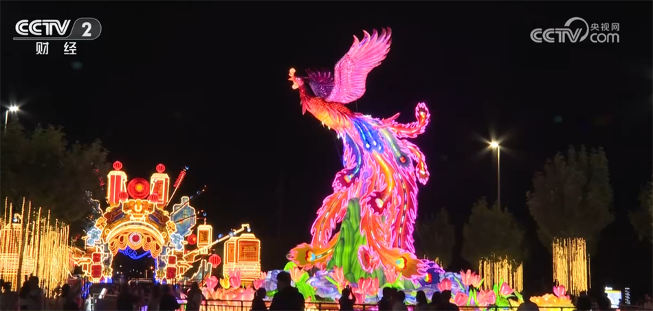 現(xiàn)場展出的彩燈有著“高、大、新、奇、特”等特點(diǎn),其中,大型燈組迎賓門長約80米,單個(gè)燈籠最大直徑就達(dá)15米;還有采用“彩色吹塑紙+透明亞克力”材質(zhì)的“鳳舞九天”燈組,這只“鳳凰”全身共有4萬片羽毛,每一片羽毛都由工匠手工剪制而成,燈組總剪制量就高達(dá)800萬剪。