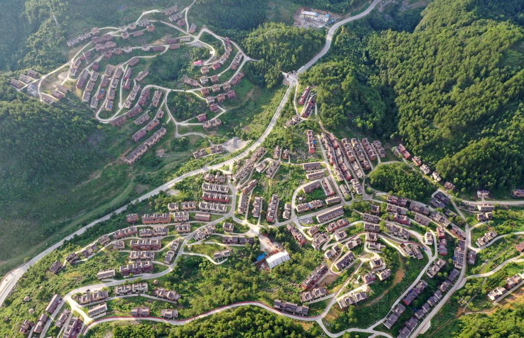 這是廣西南丹縣里湖瑤族鄉(xiāng)朵努社區(qū)“千家瑤寨·萬(wàn)戶瑤鄉(xiāng)”易地扶貧搬遷安置點(diǎn)(2020年8月4日攝,無(wú)人機(jī)照片)。新華社記者 陸波岸 攝