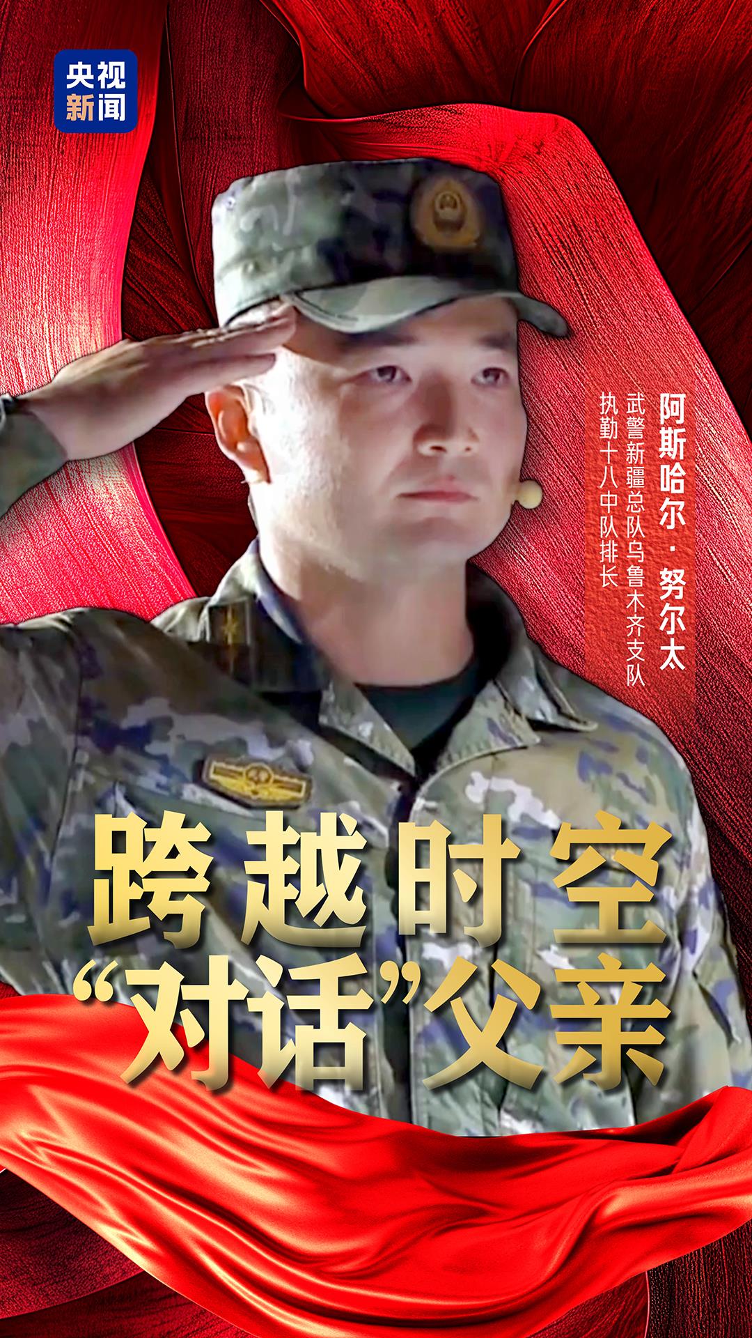 21日晚《把青春華章寫在祖國大地上》大思政課網(wǎng)絡(luò)主題活動現(xiàn)場,投筆從戎的南開學(xué)子阿斯哈爾 · 努爾太,通過AI技術(shù)穿越時空與父親對話。阿斯哈爾獻給父親的一個軍禮,令無數(shù)人動容。
