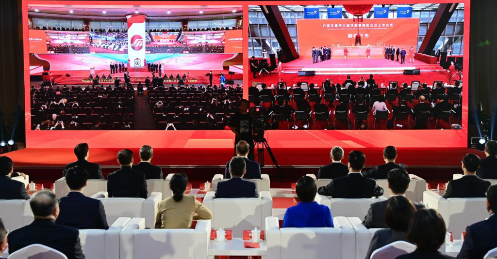 2023年4月10日,在滬深交易所主板注冊制首批企業(yè)上市儀式北京分會場,與會嘉賓通過屏幕實時觀看滬深兩地交易所上市儀式。新華社記者李賀 攝