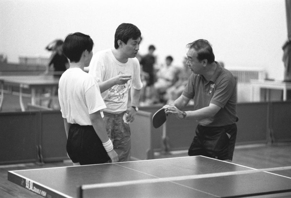 這是張燮林(右)在河北省正定乒乓球訓(xùn)練基地指導(dǎo)隊(duì)員訓(xùn)練(資料照片)。新華社記者 張小軍 攝