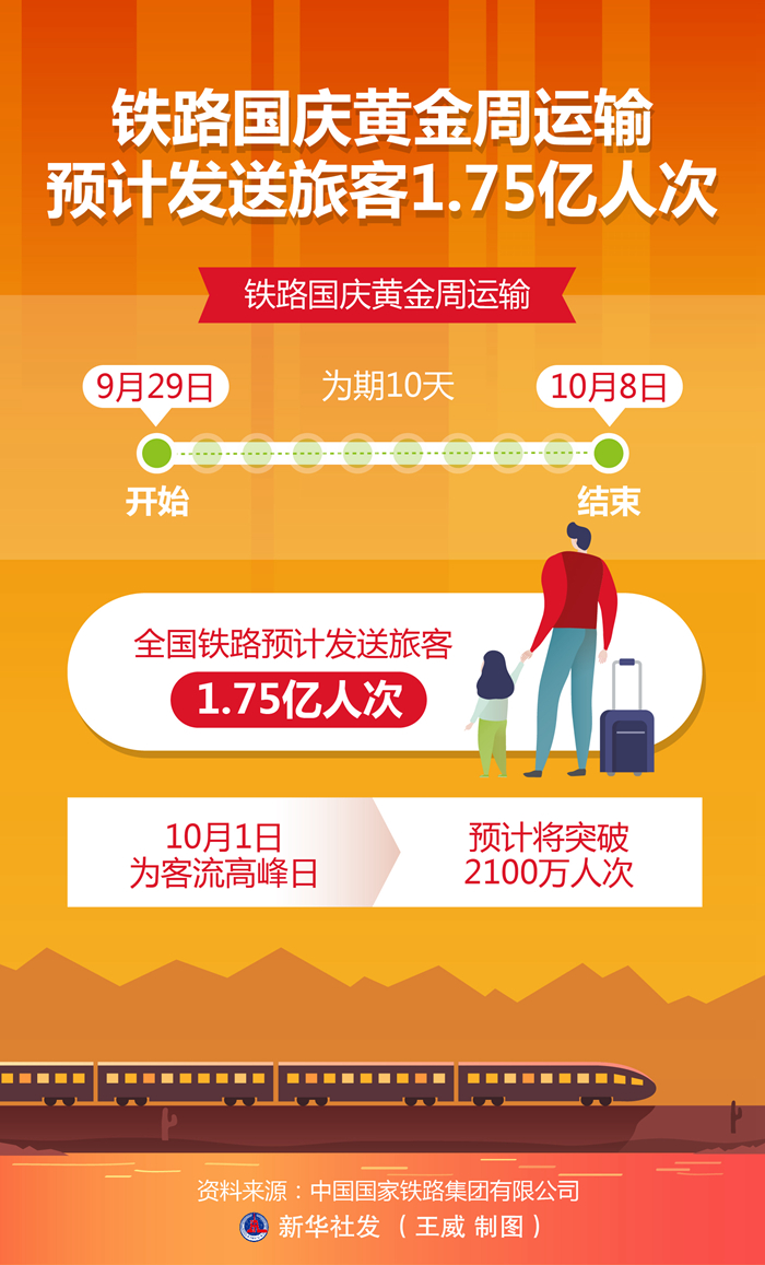 記者從中國國家鐵路集團(tuán)有限公司獲悉,鐵路國慶黃金周運(yùn)輸自9月29日開始,至10月8日結(jié)束,為期10天,全國鐵路預(yù)計發(fā)送旅客1.75億人次,10月1日為客流高峰日,預(yù)計將突破2100萬人次。